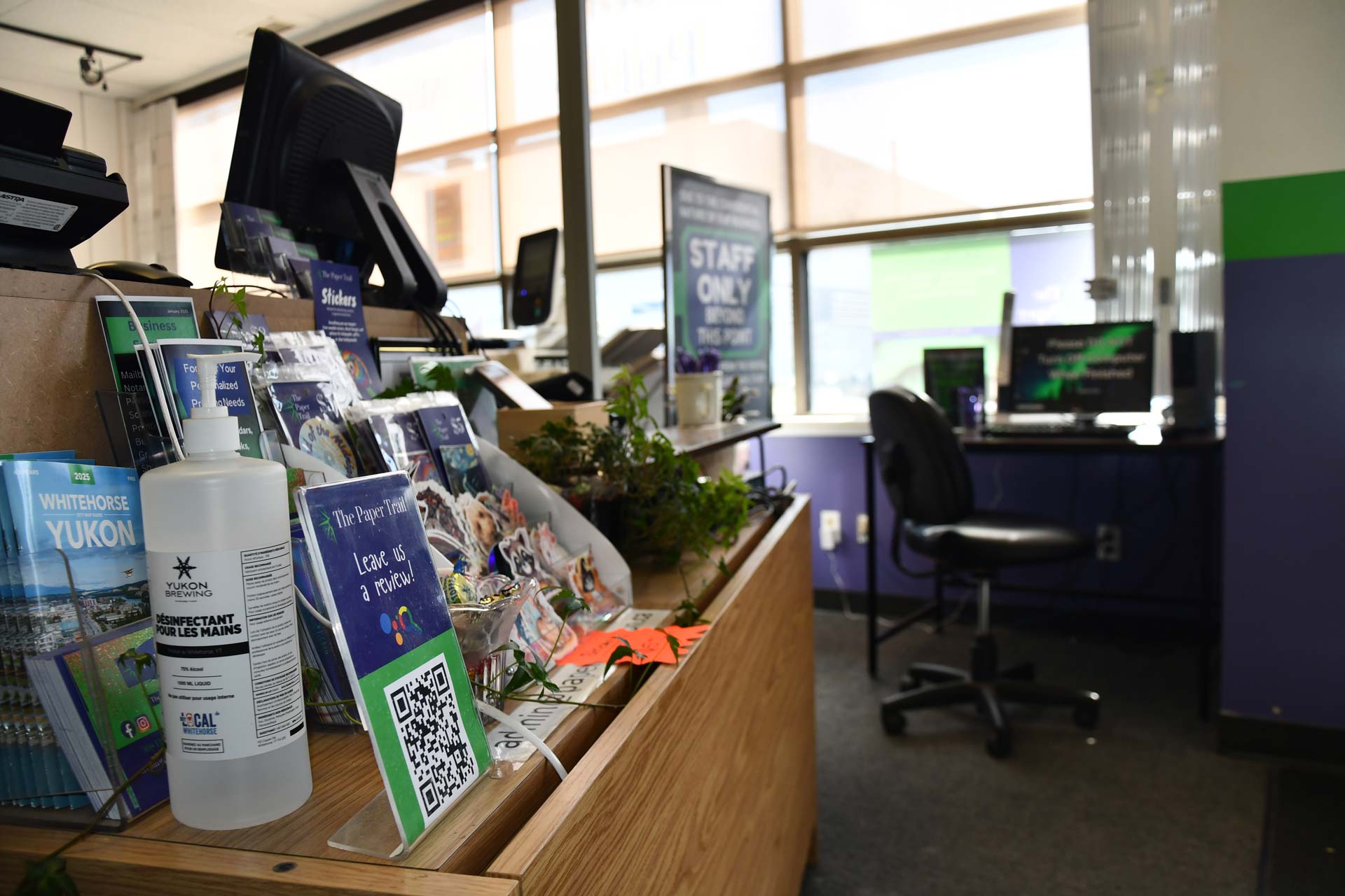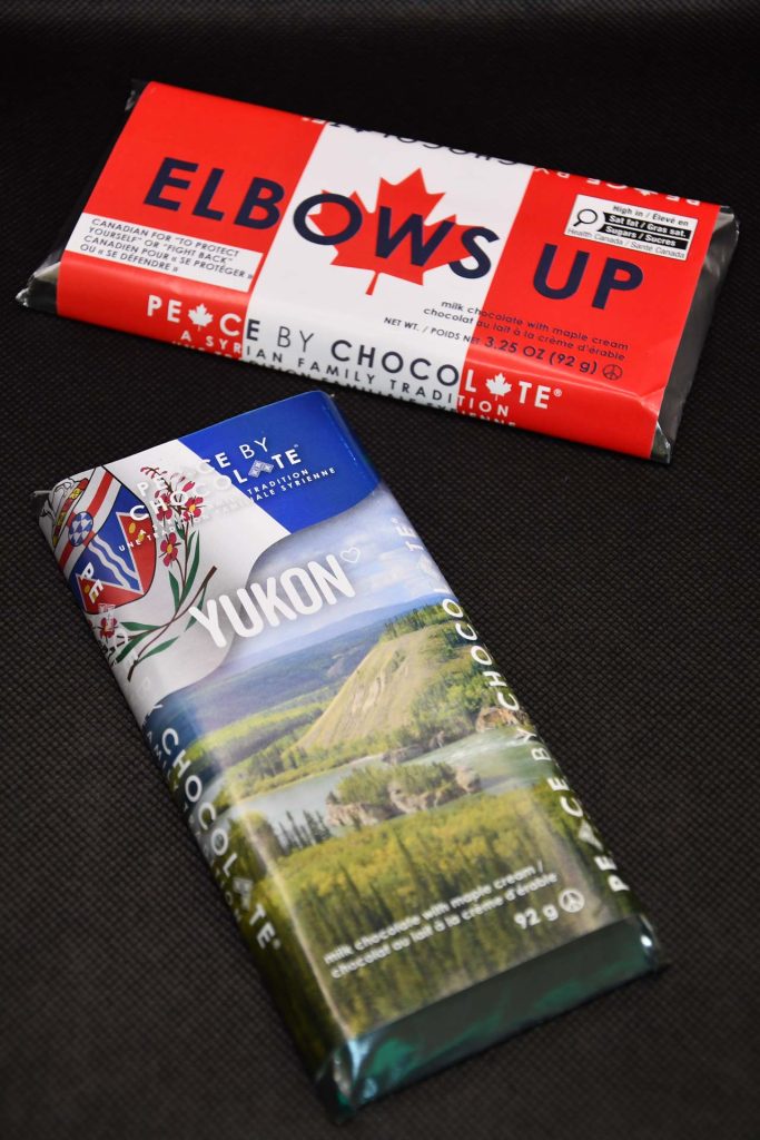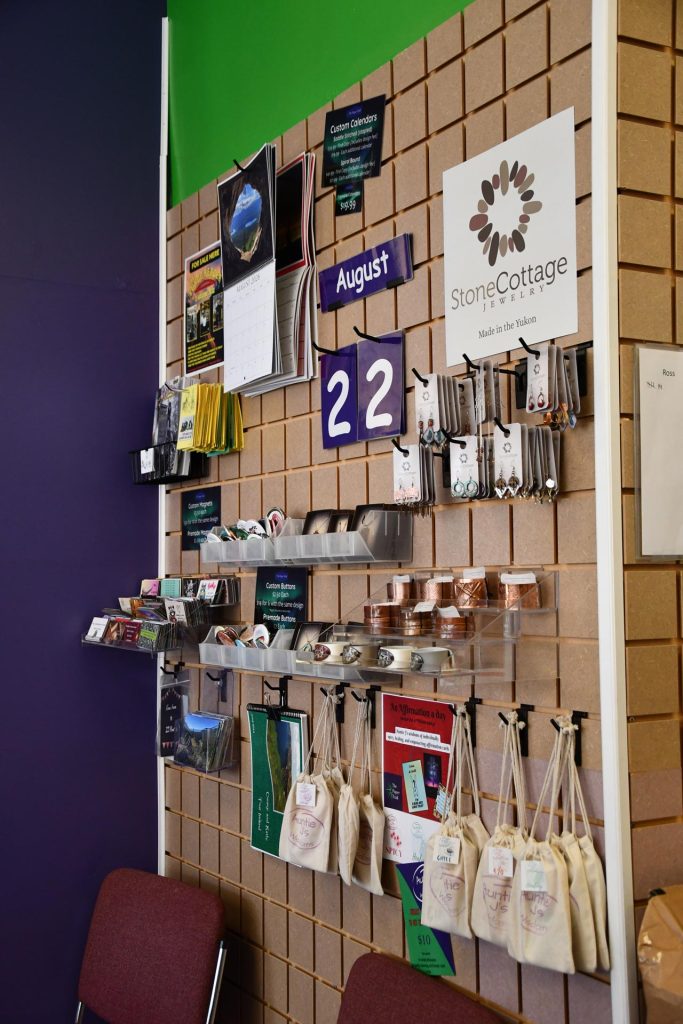 We sell unique stickers, magnets, calendars, and our original “Auntie J” wisdom cards here in shop! We also support Canadian businesses such as Peace by Chocolate, Side Hustle Fudge, and Stone Cottage jewelry where you can shop their products in stock right here! We also have a local book set by Samuel Holloway available in store – The Yukon Reader series!